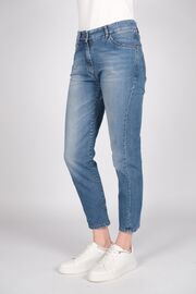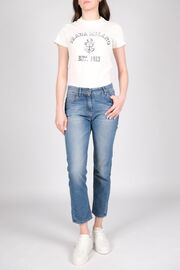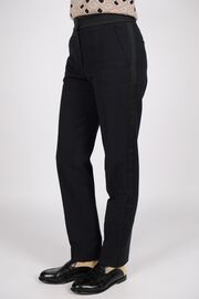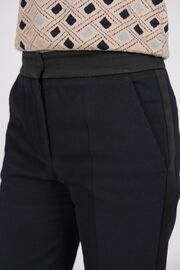 Хлопковые брюки темно-синего цвета с черными лампасами