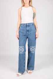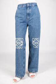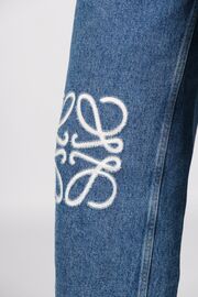 Джинсы голубого цвета с вышивкой на коленях