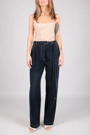 Джинсы темно-синего цвета с защипами