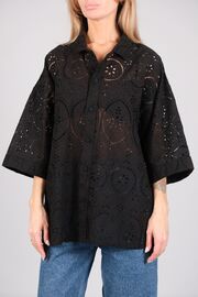 Рубашка черного цвета свободного кроя из шитья