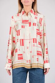 Блуза молочного цвета с красным принтом