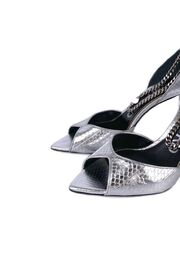 Туфли серебристого цвета с тиснением под рептилию