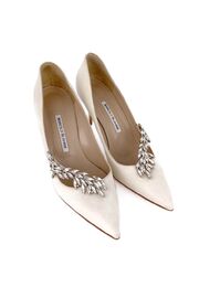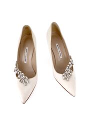 Атласные лодочки кремового цвета с декором