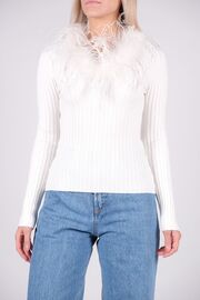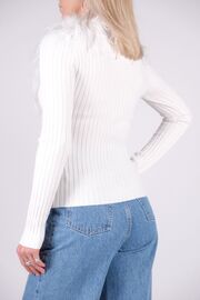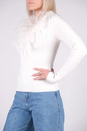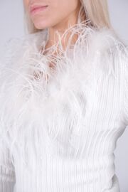 Топ белого с длинным рукавом и декором из перьев