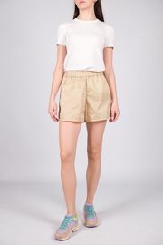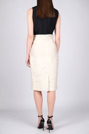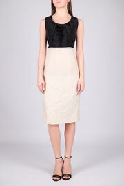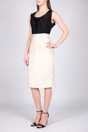 Костюм молочного цвета с набивным рисунком черно-белого цвета