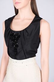 Шёлковый топ чёрного цветас кружевом и цветочным принтом