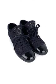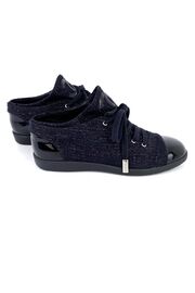 Кеды черного цвета из твида с лаковыми носиками