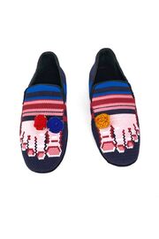 Текстильные лоферы с принтом и брошами