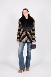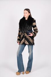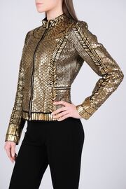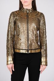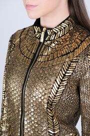 Жакет на молнии расшитый кожаными деталями золотого цвета