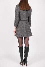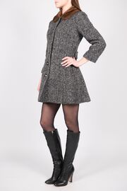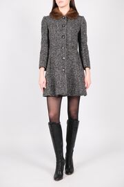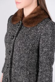 Пальто в елочку с меховым воротником