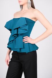 Топ темно-бирюзового цвета с воланами