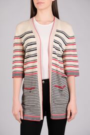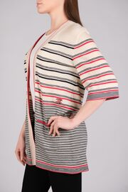 Кардиган молочного цвета в красно-черные полоски