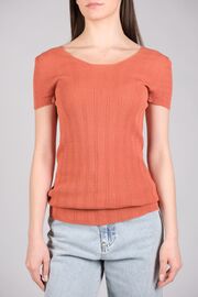 Трикотажный топ терракотового цвета с люрексом