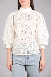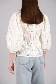 Хлопковая блуза молочного цвета с вышивкой ришелье