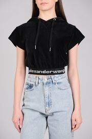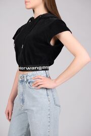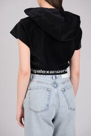 Велюровый топ черного цвета с капюшоном