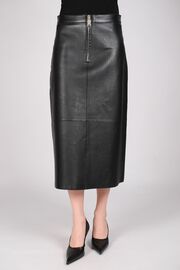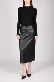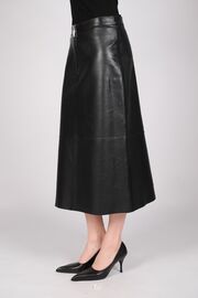 Кожаная юбка-миди черного цвета