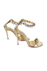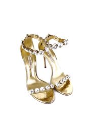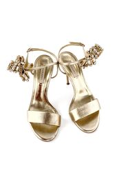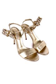 Замшевые босоножки черного цвета с глиттером на каблуке