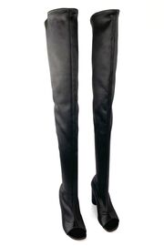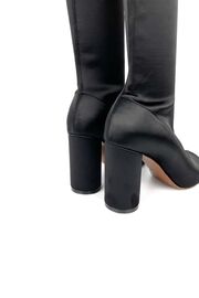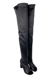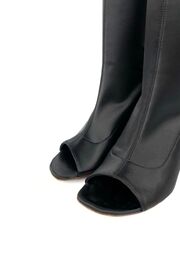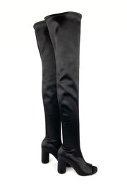 Сатиновые ботфорты с открытыми носиками черного цвета