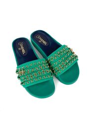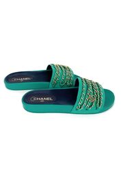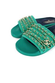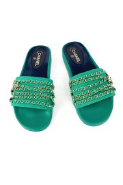 Шлепанцы зеленого цвета с цепочками