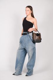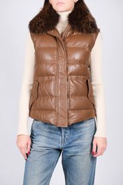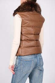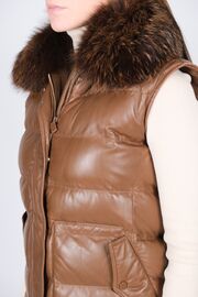Кожаный жилет коричневого цвета с воротником из меха лисы