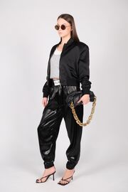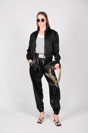 Комбинированное пальто с рукавом 3/4 и кожаными вставками